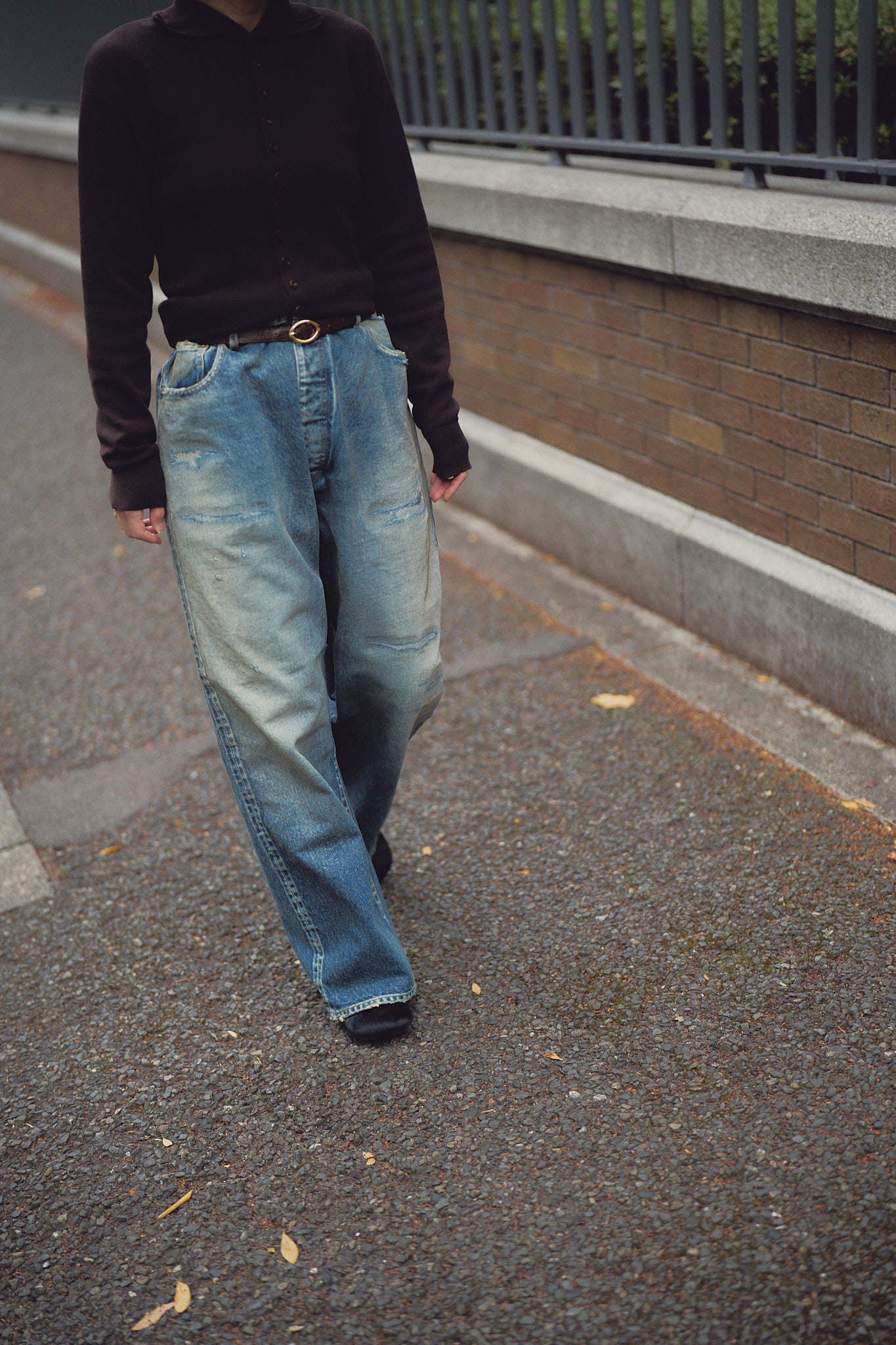 中出「今までの伊藤くんのオーダーはトラウザー感覚で履けるようなデニムっていうイメージでしたよね。すごくボリュームはあるんだけどヒップはすっきりしていて綺麗な落ち方のシルエット、色落ちは割と平坦なのっぺり感、強弱のない縦落ちとか。そういうデニムを男性が履くっていうのが面白いなと個人的には思っていたんです。メンズライクなトップスとの相性を考えたりすると新しいバランス感だなって」